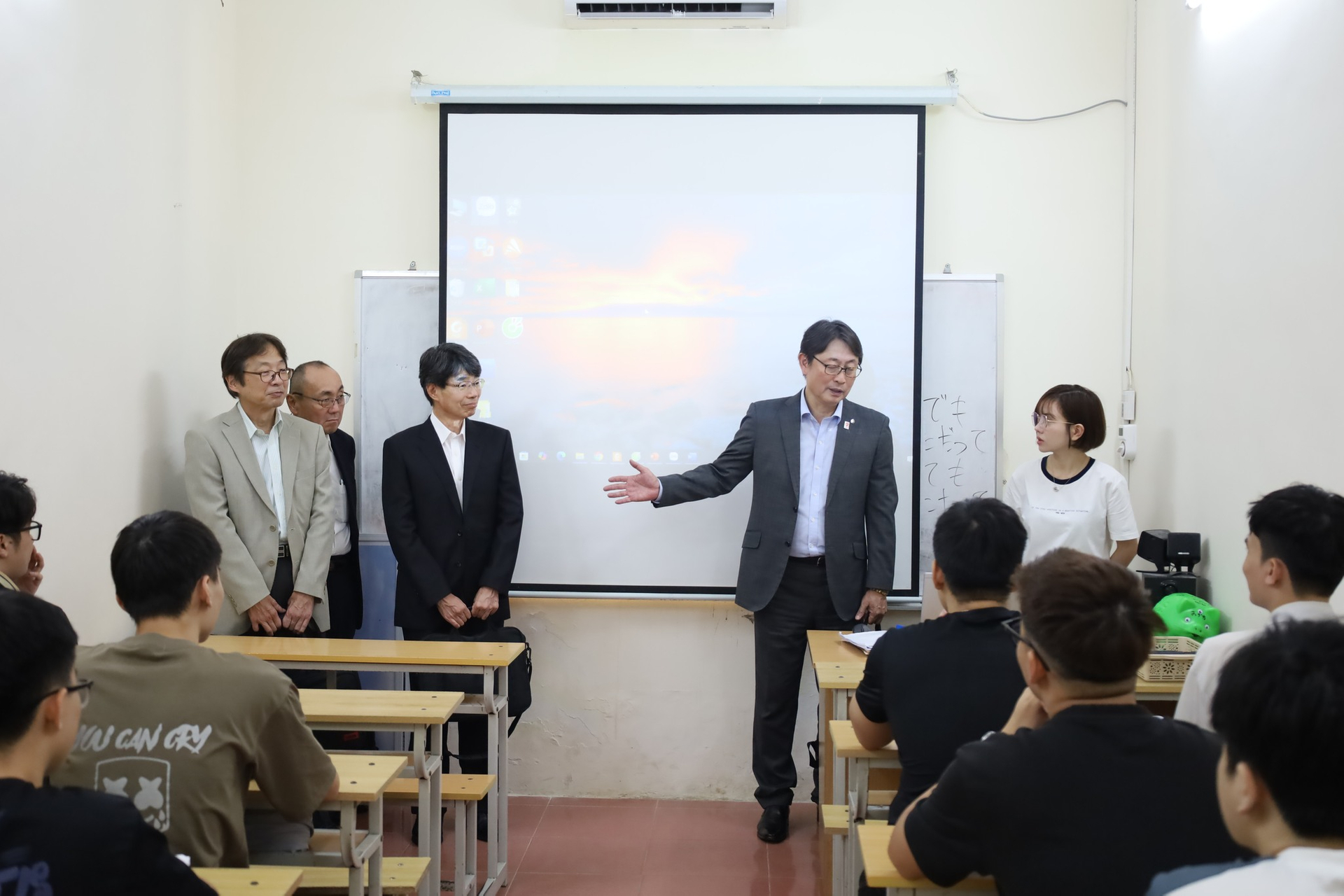 Trong chương trình, các bên đã trao đổi nhiều thông tin quan trọng, giới thiệu về 𝐜𝐡𝐮̛𝐨̛𝐧𝐠 𝐭𝐫𝐢̀𝐧𝐡 𝐤𝐲̃ 𝐬𝐮̛ đ𝐢̣𝐧𝐡 𝐡𝐮̛𝐨̛́𝐧𝐠 𝐥𝐚̀𝐦 𝐯𝐢𝐞̣̂𝐜 𝐭𝐚̣𝐢 𝐍𝐡𝐚̣̂𝐭 𝐁𝐚̉𝐧 cũng như thảo luận về cơ hội hợp tác, tuyển dụng internship và kỹ sư chất lượng cao trong thời gian tới. Sau buổi làm việc, đại diện các doanh nghiệp Nhật Bản đã tham quan các lớp học tiếng Nhật giao lưu với các bạn sinh viên đang chương trình kỹ sư định hướng làm việc tại Nhật Bản của Trường ĐH Thuỷ lợi.